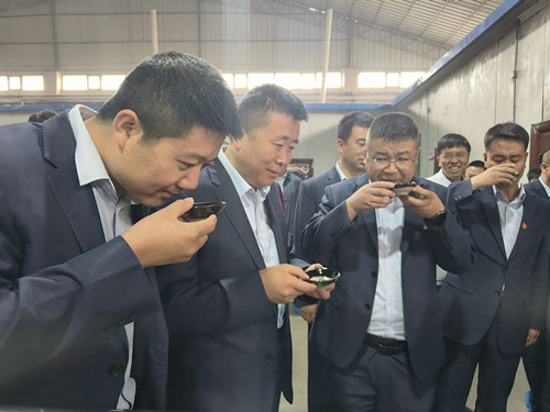 公司董事長劉磊、副總經(jīng)理張建軍陪同參觀了廠區(qū)及白酒生產(chǎn)車間,并品嘗了剛出鍋的廩子酒。張建軍從企業(yè)發(fā)展歷程、黨建引領(lǐng)發(fā)展、白酒釀造生產(chǎn)工藝、產(chǎn)品銷售渠道等方面詳細的做了介紹。