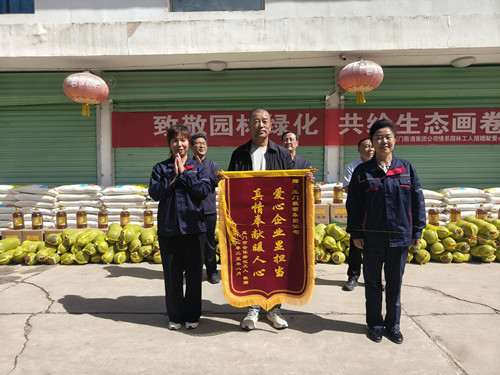 活動現場氣氛熱烈,綠化工人代表手持繡有“愛心企業顯擔當,真情奉獻暖人心”的錦旗,鄭重贈予我公司,用鮮艷的錦旗表達最誠摯的謝意。市委常委、組織部部長、統戰部部長謝祥出席捐贈儀式。公司副總經理張建軍代表敬酒集團向長期奮戰在城市綠化一線的全體工作人員致以誠摯的問候和衷心的感謝,并將物資送到每一個綠化工人手中,感謝他們長期以來為城市綠化和環境美化所付出的辛勤努力。